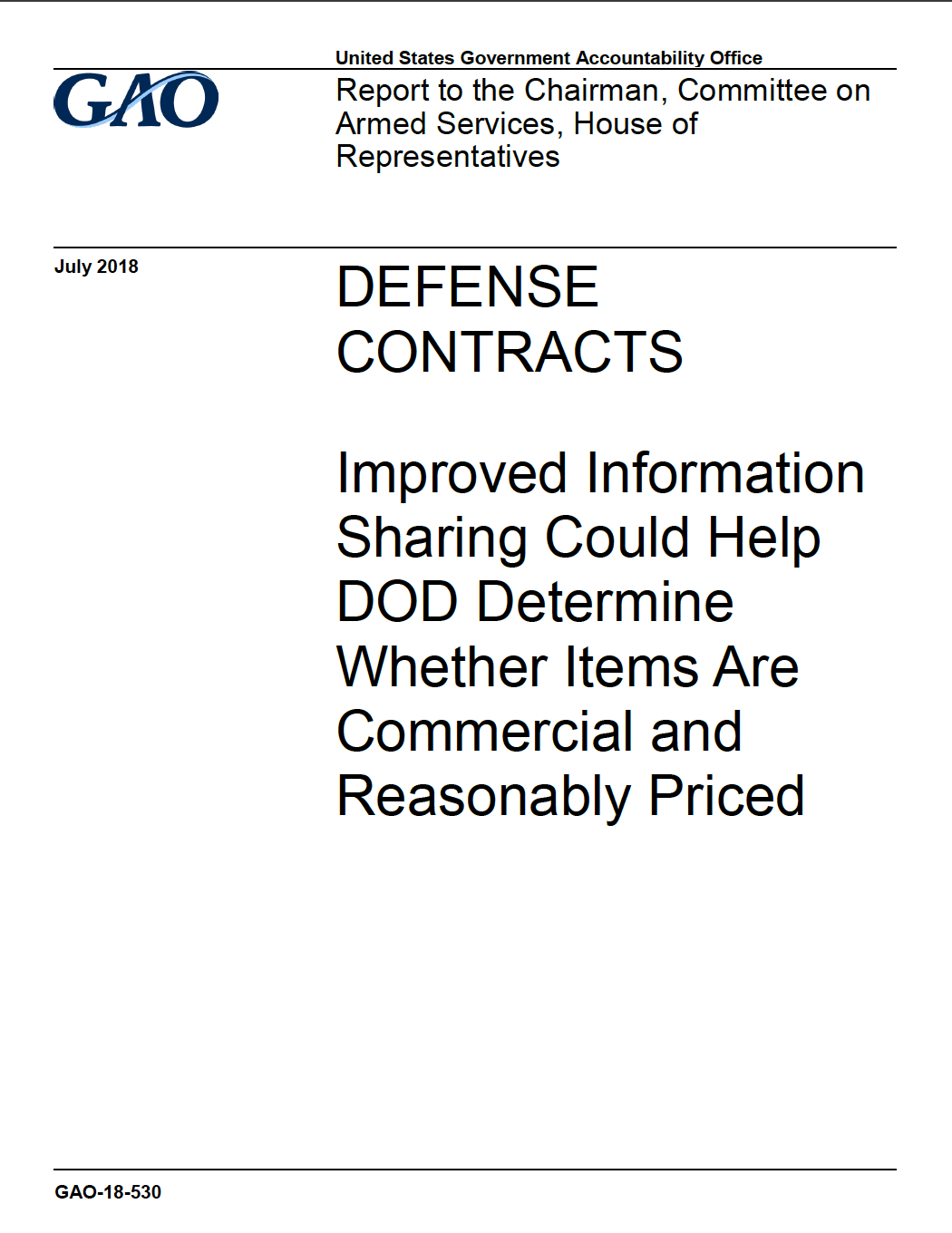 - 2018 - U.S. Government Accountability Office. Defense Contracts: Improved Information Sharing Could Help DOD Determine Whether Items are Commercial and Reasonably Priced. Research report prepared by the Contracting and National Security Acquisitions Team for the U.S. Congress. Washington, D.C.: U.S. Government Accountability Office. Role: Analyst. [Link to Full Report]